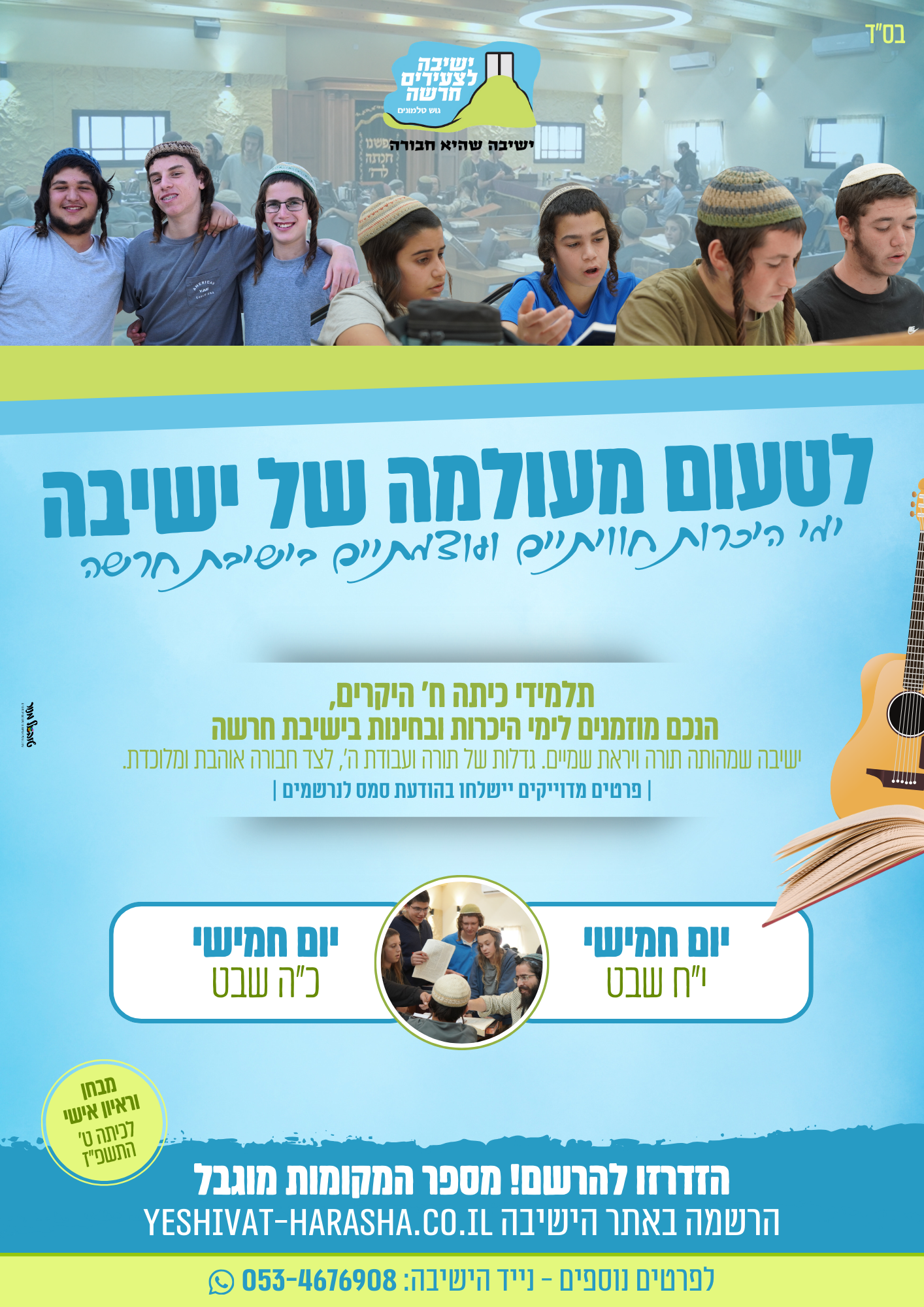 הרשמה לימי היכרות בישיבת חרשה